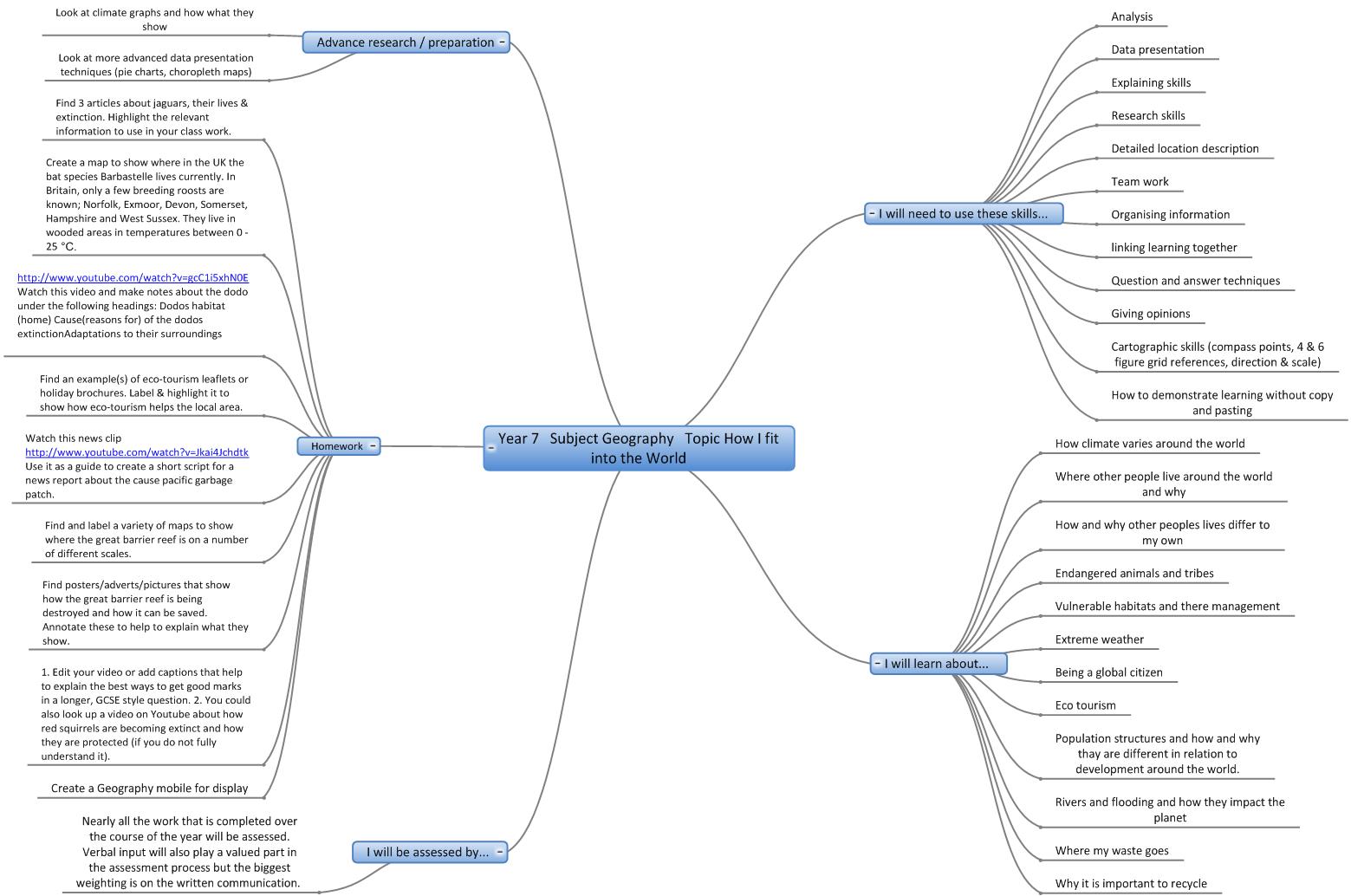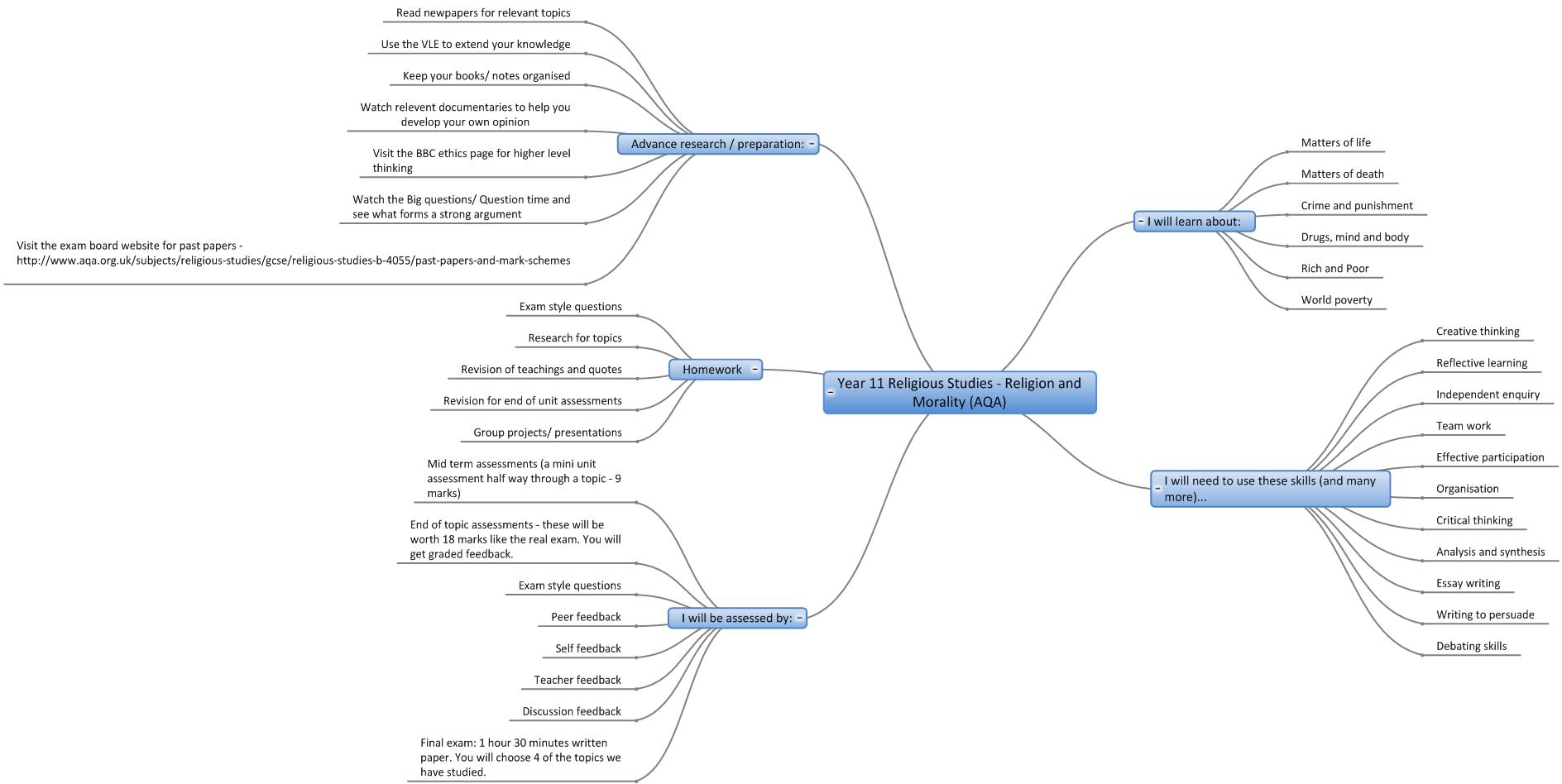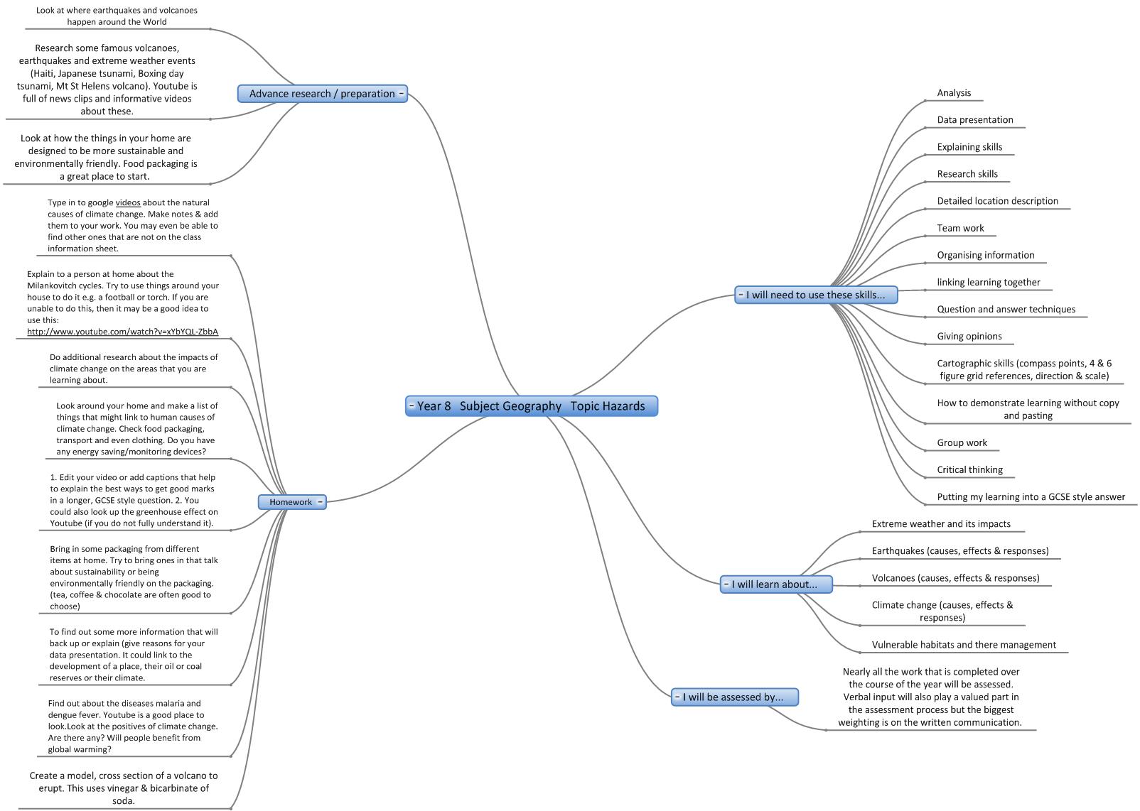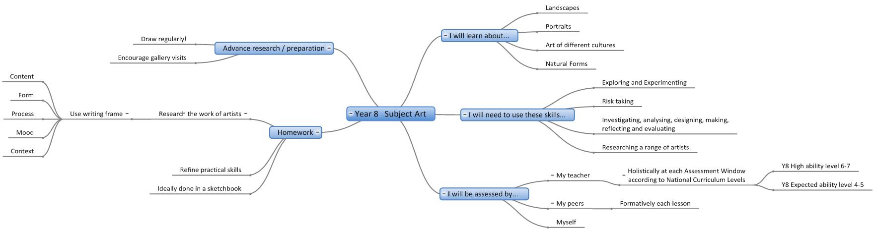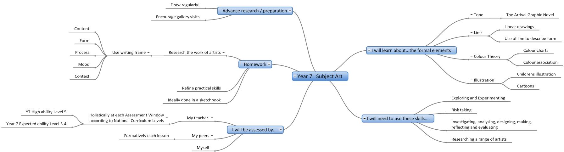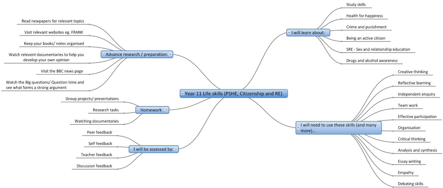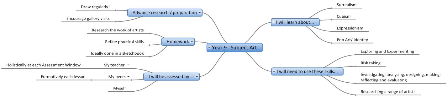 We are in the process of creating online interactive 'mind maps' of the topics covered in each year in each subject. Here are the 'mind maps' that are currently available:-