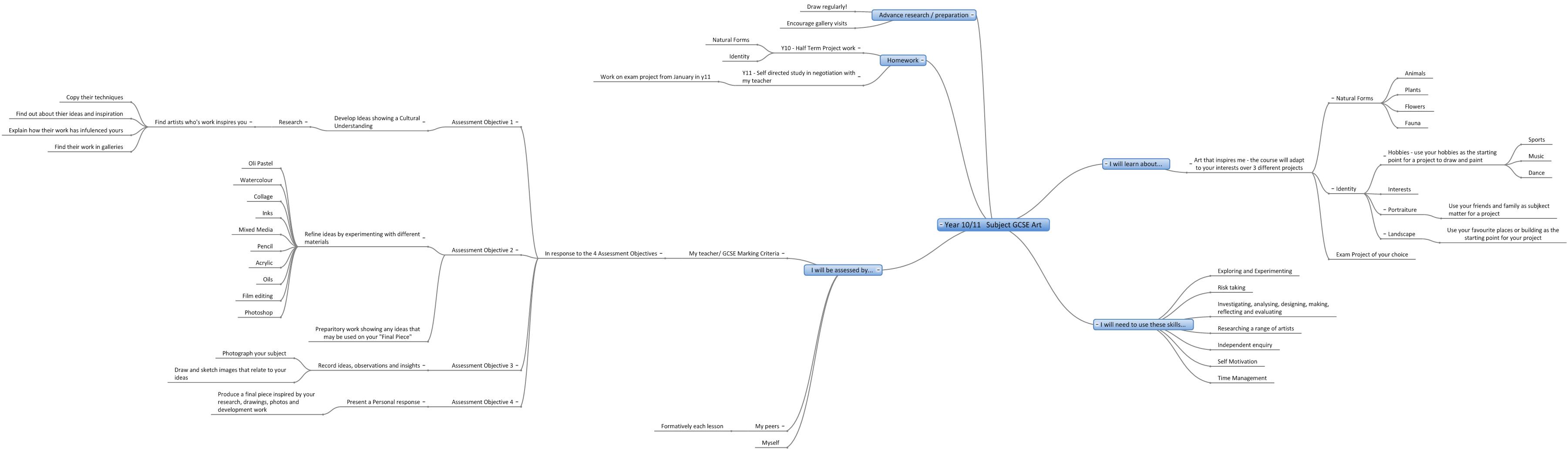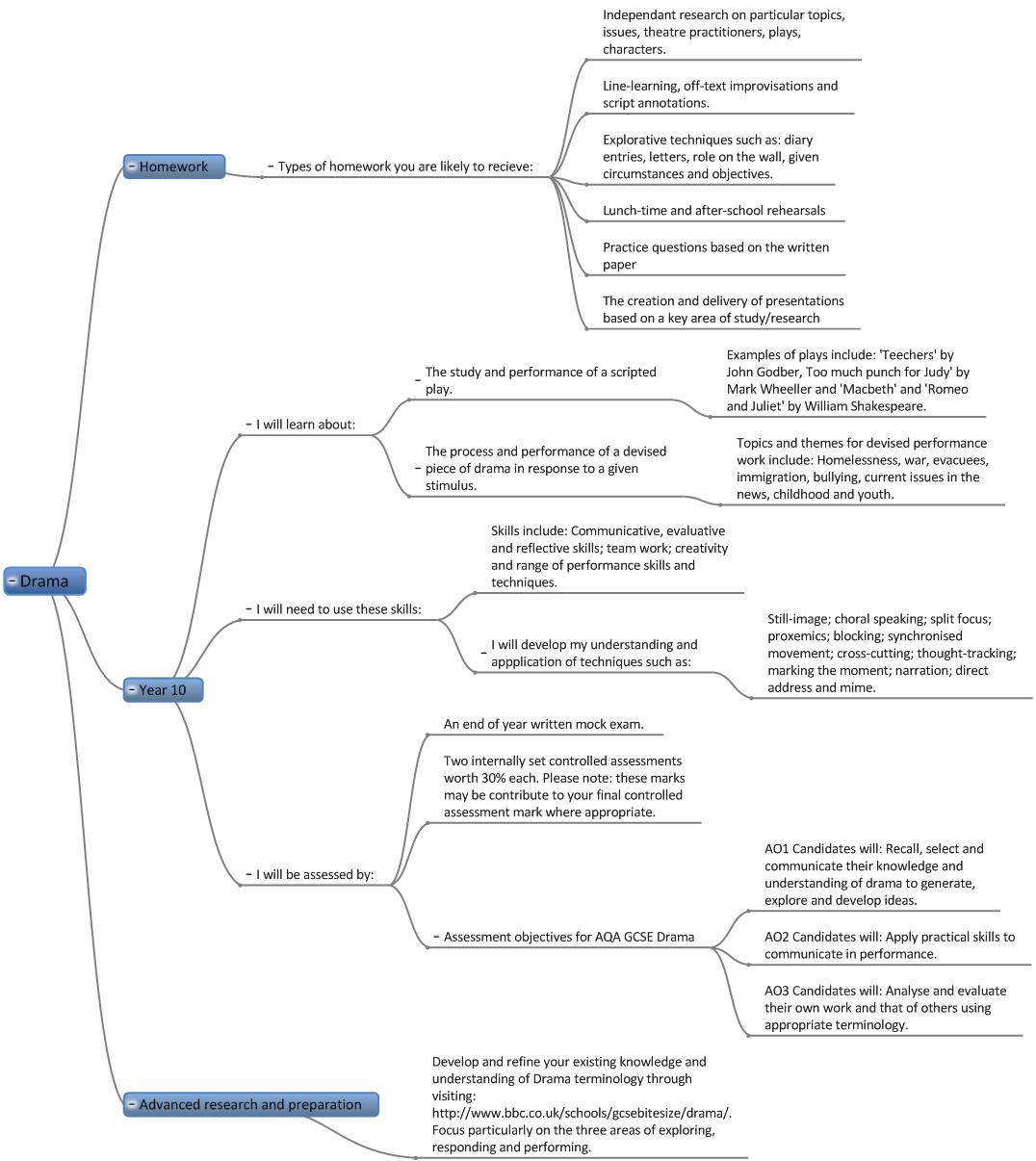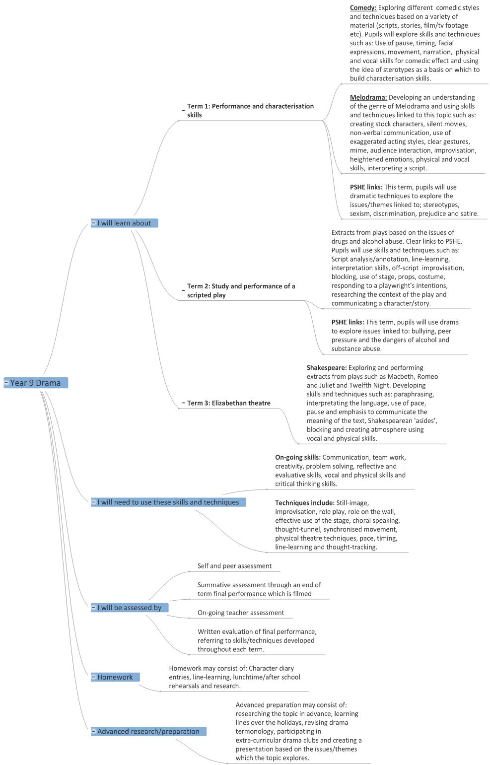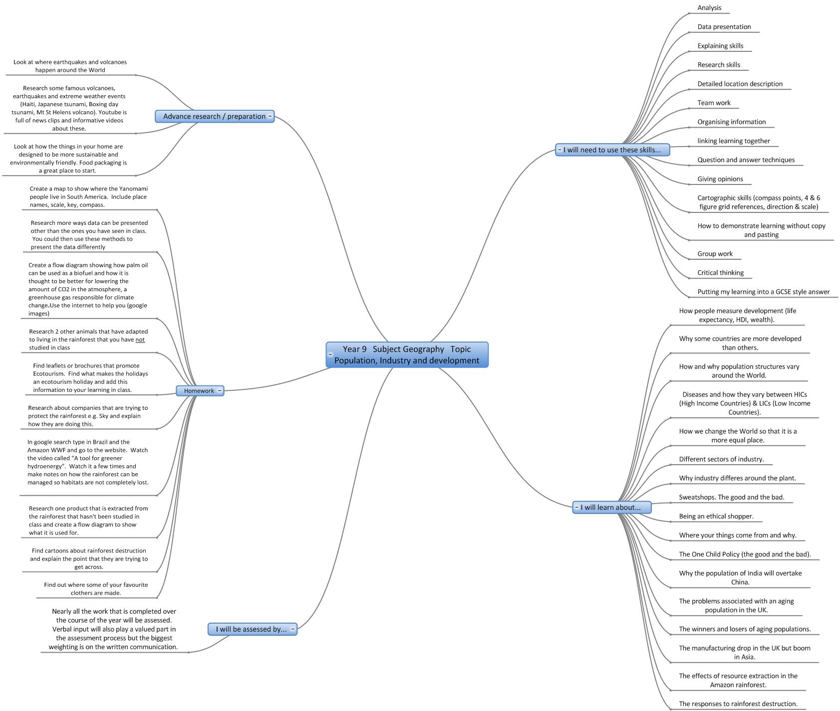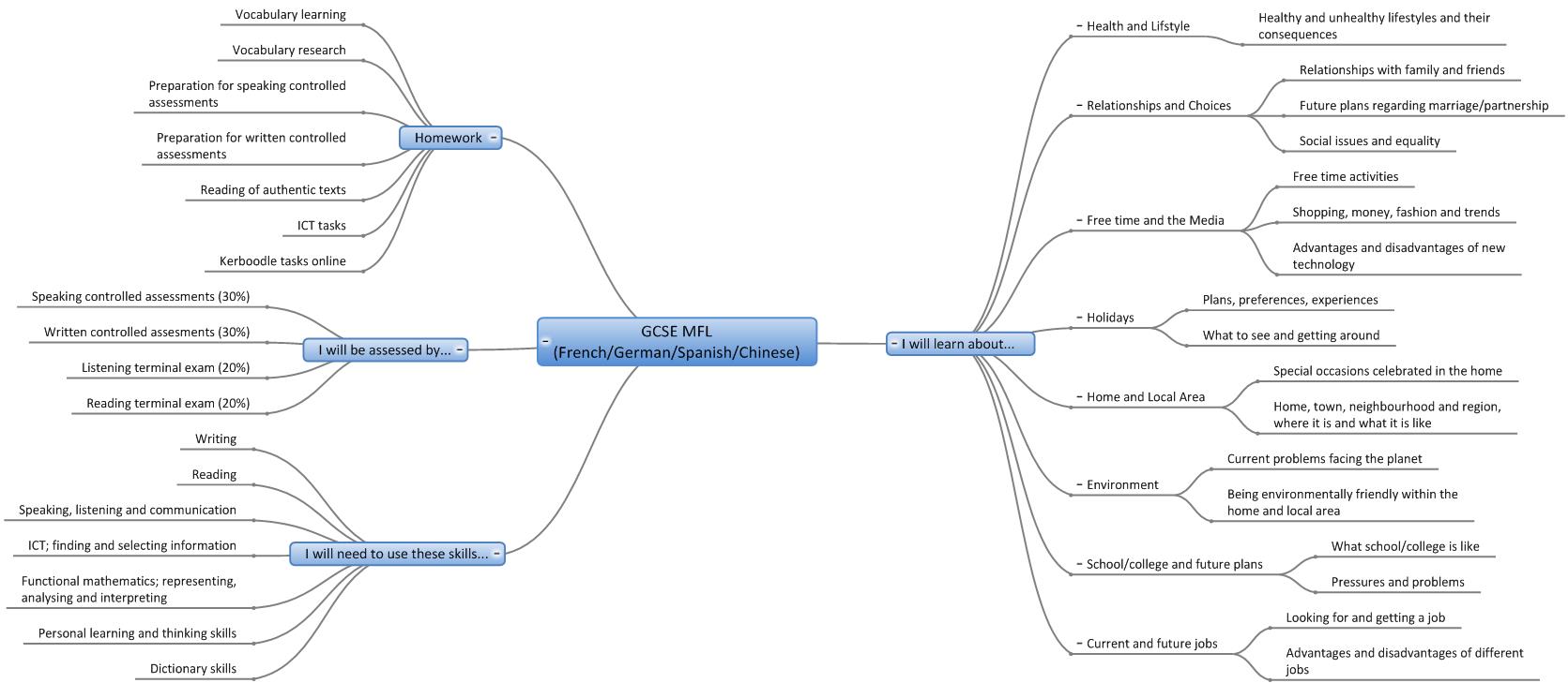 We are in the process of creating online interactive 'mind maps' of the topics covered in each year in each subject. Here are the 'mind maps' that are currently available:-