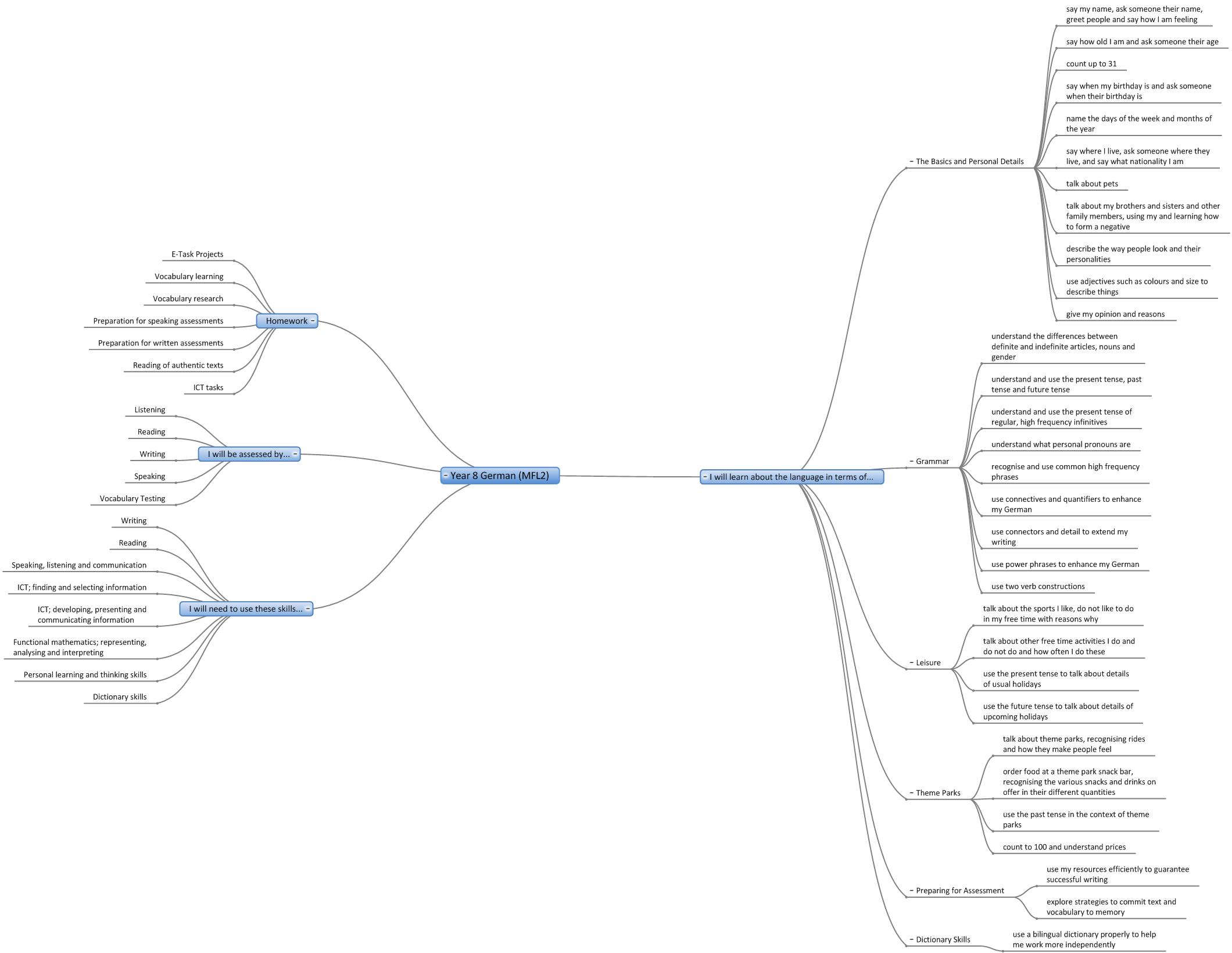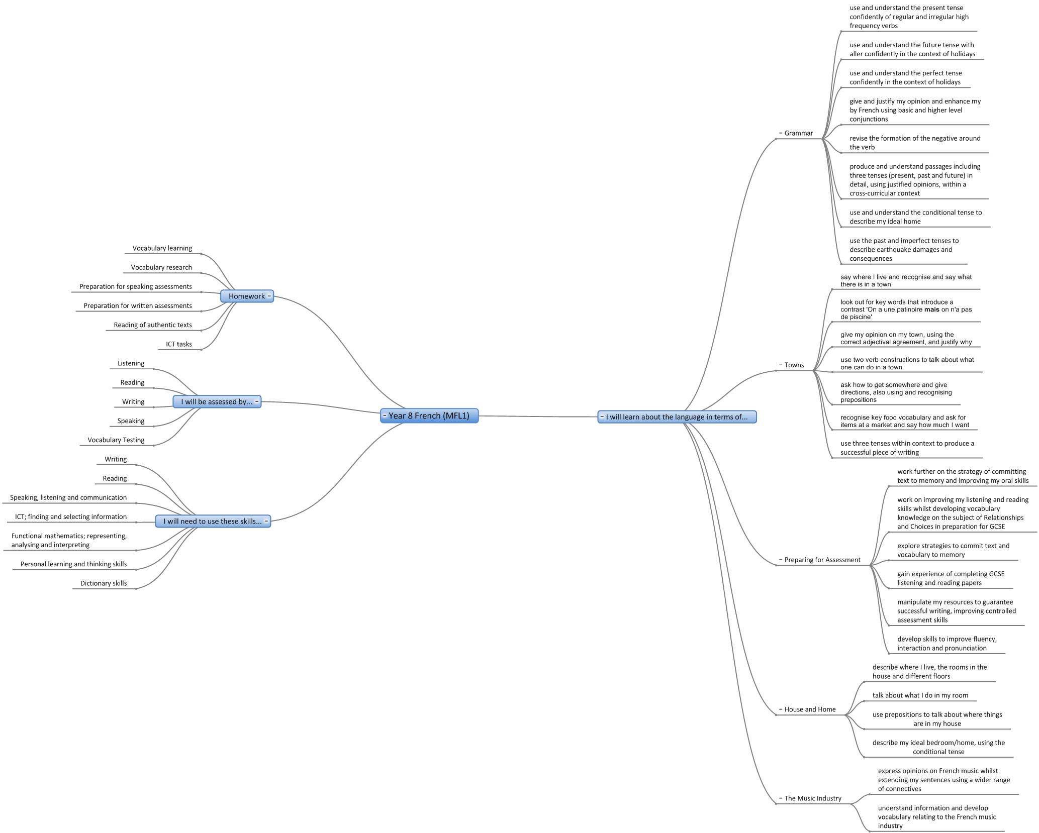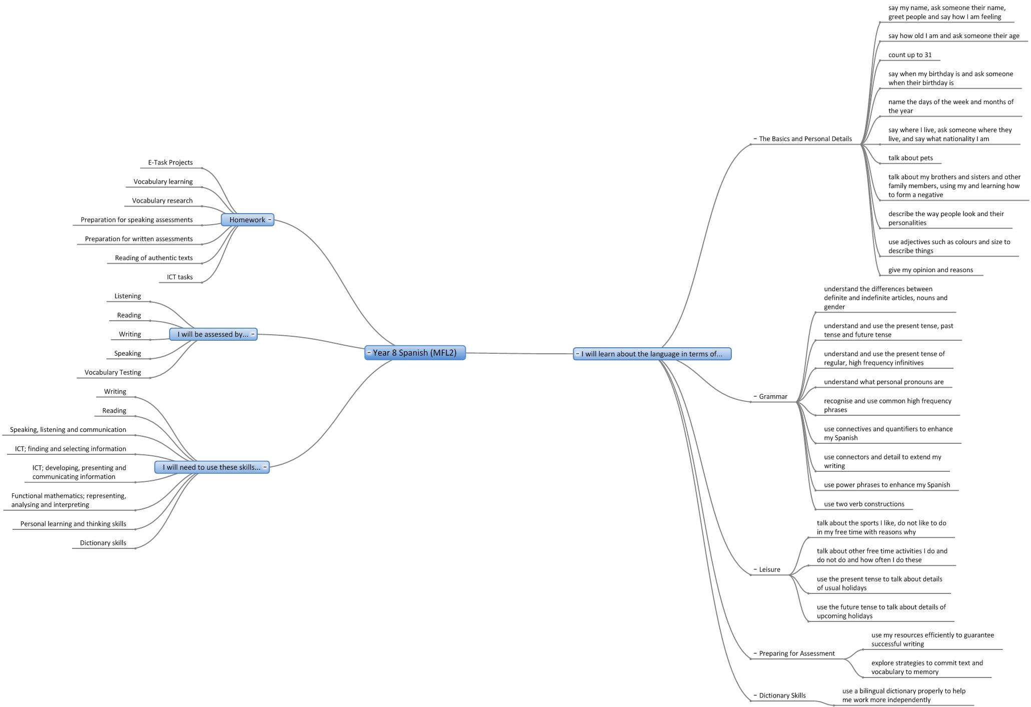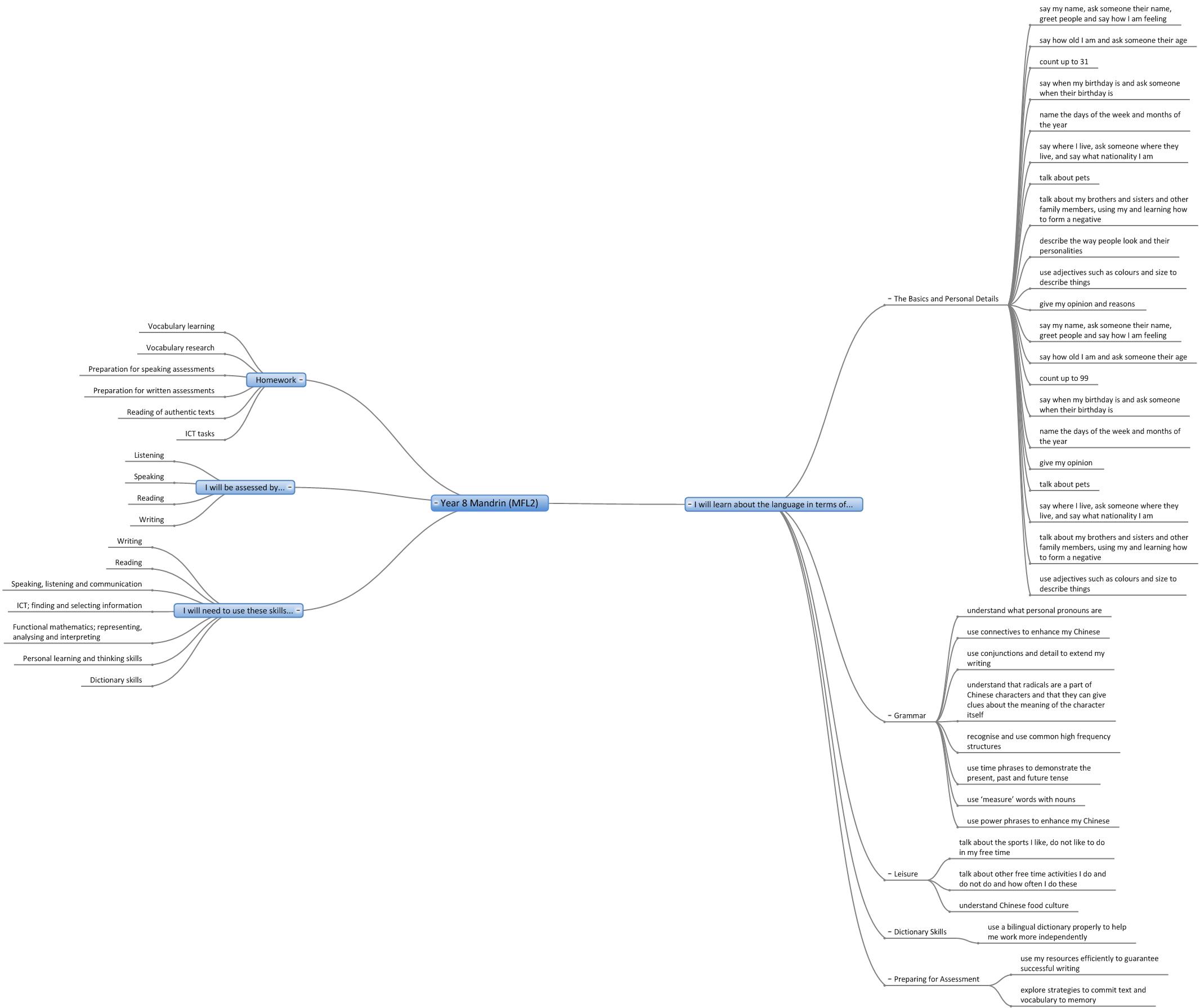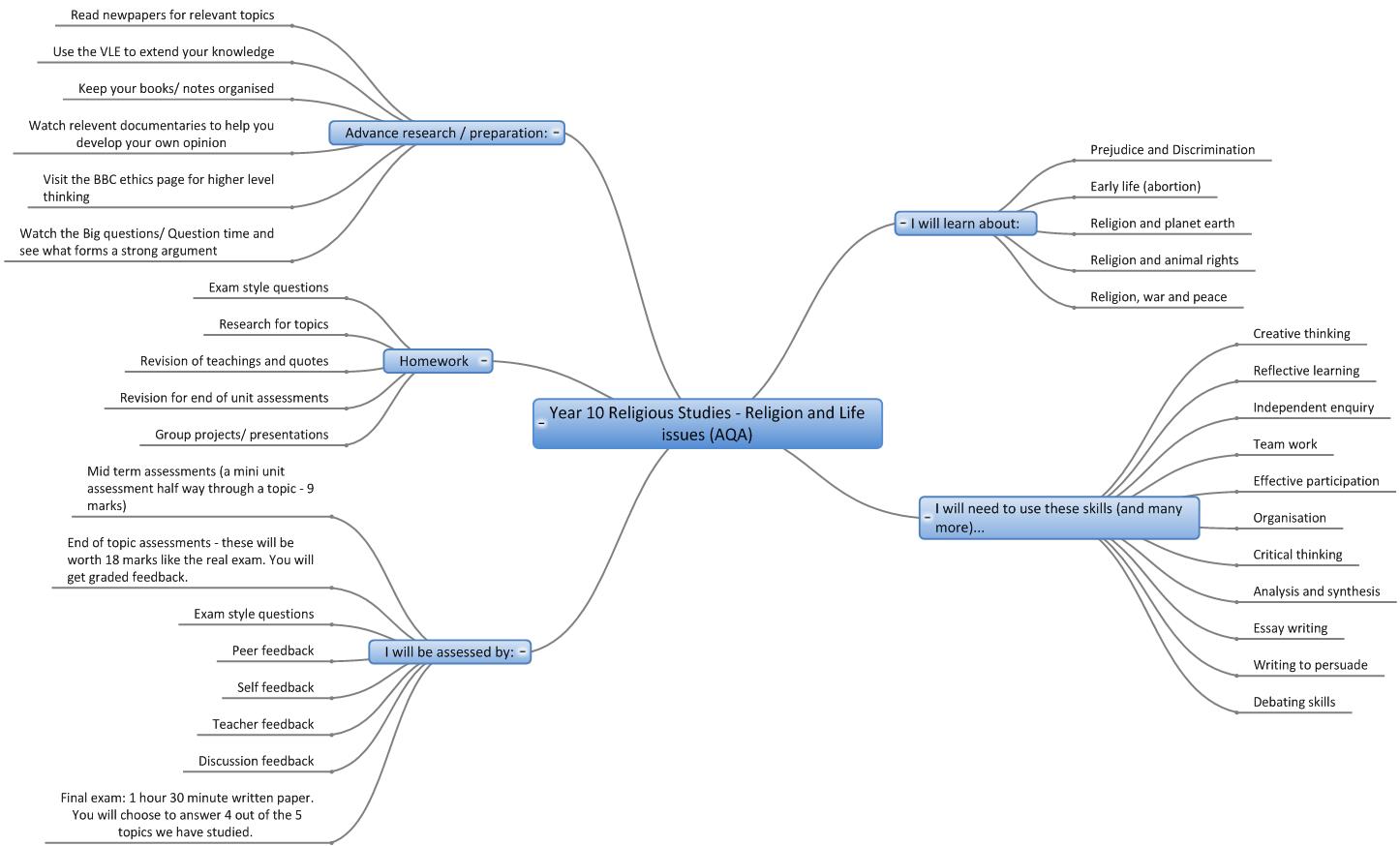 We are in the process of creating online interactive 'mind maps' of the topics covered in each year in each subject. Here are the 'mind maps' that are currently available:-